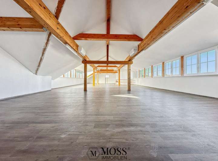 • Komplett offener Raum, sehr hell mit 3fach verglasten Fenstern