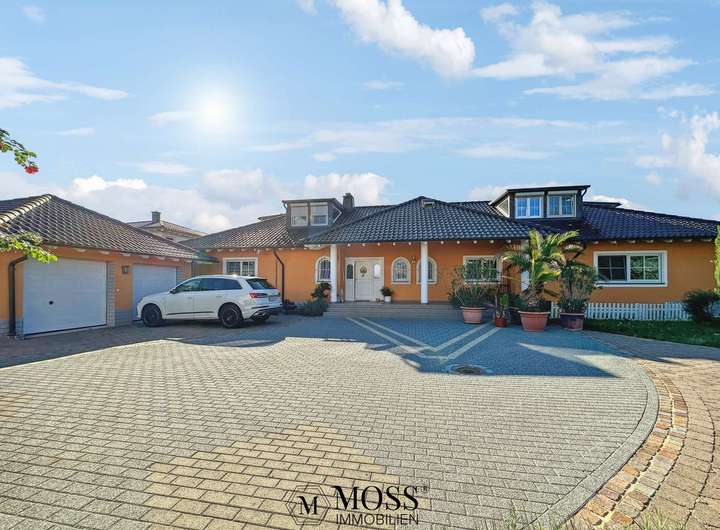 mit ganzen 635qm Wohnfläche! 2001 mit exquisitem Geschmack erbaut und 2016 umfangreich und hochwertig saniert, begeistert diese Villa mit allen erdenklichen Annehmlichkeiten! Sie betreten das Haus über eine elegante Veranda im Hacienda-Stil. Die einladend helle Diele führt Sie zu Ihrer Linken in eine moderne Designerküche, welche mit ihrem klaren Design und freier Kücheninsel für ein einzigartiges Kocherlebnis sorgt. Die Böden sind größtenteils mit edlem Eichenparkett belegt.