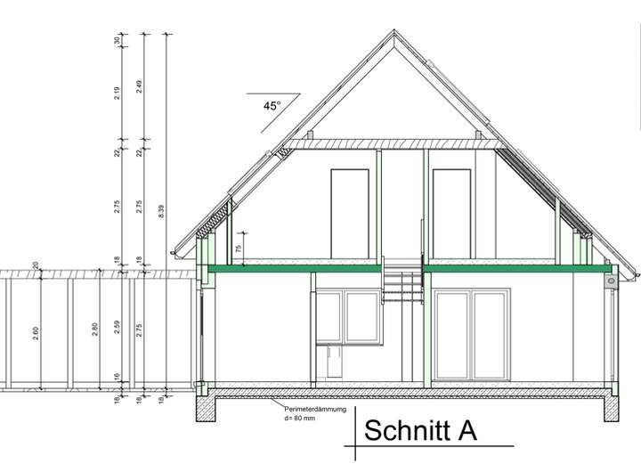 Noch zu erwähnen ist der Stauraum auf dem Spitzboden, der über eine Auszugsleiter vom Flur im Dachgeschoss erreicht wird. Hier ist auch die Be- und Entlüftungsanlage (mit Wärmerückgewinnung) untergebracht.