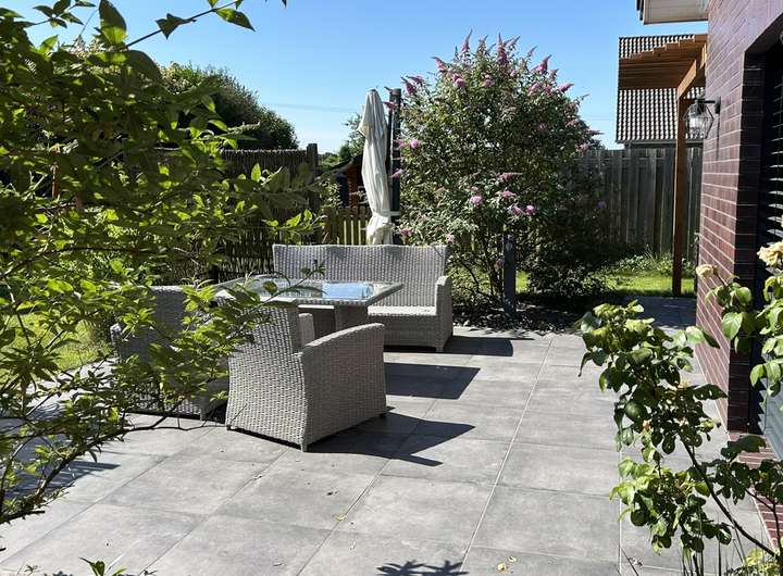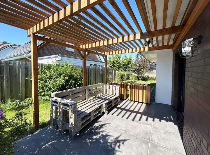 Der Garten ist großzügig angelegt, es gibt zwei Terrassen sowie ein Gartenhaus. Insgesamt hat das Grundstück eine Größe von ca. 675 m². Ein großzügiger Doppel-Carport, mit angrenzendem Geräteraum bietet zwei Wallboxen, sodass Nutzer der E-Mobilität hier entspannt die Fahrzeuge laden können.
