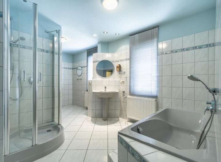 - 428 m² Grundstück mit Hof, Stellplatz und Garten - Kernsanierung und Neubau 1994 - helle, freundliche Wohnfläche 312,96 m² - 5 - 6 richtig große Schlaf- oder Arbeitszimmer - Balkone auf jeder Ebene, Terrasse im Garten - 2 Bäder und ein Gäste-WC - moderne, schöne Einbauküche mit Balkon - elektrisches Tor, 2 Stellplätze im Hof - Sauna im großen Bad - Gaszentralheizung Buderus Baujahr 2023 - Energie: B, 160,4 kWh/m², E, Gas