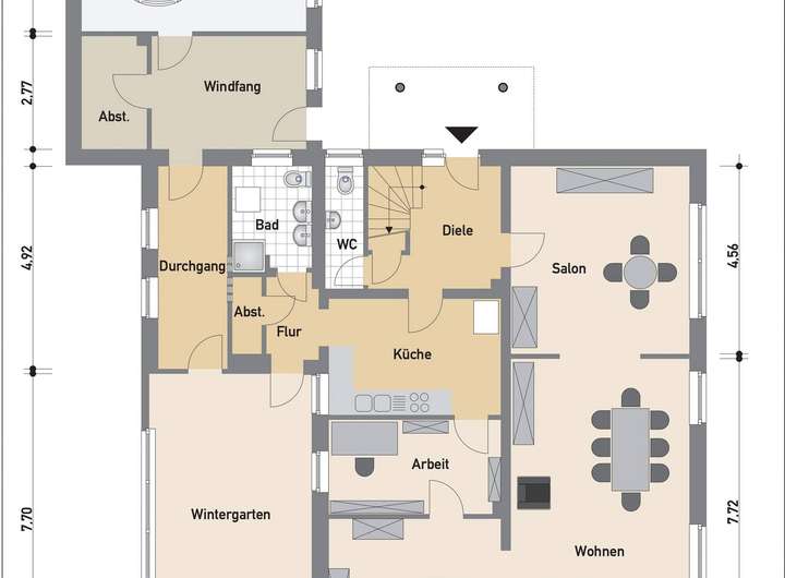 Ein funktional gehaltener Raum mit Wintergarten-Charakter erweitert das Erdgeschoss sinnvoll und bietet Raum für individuelle Gestaltungsideen.
