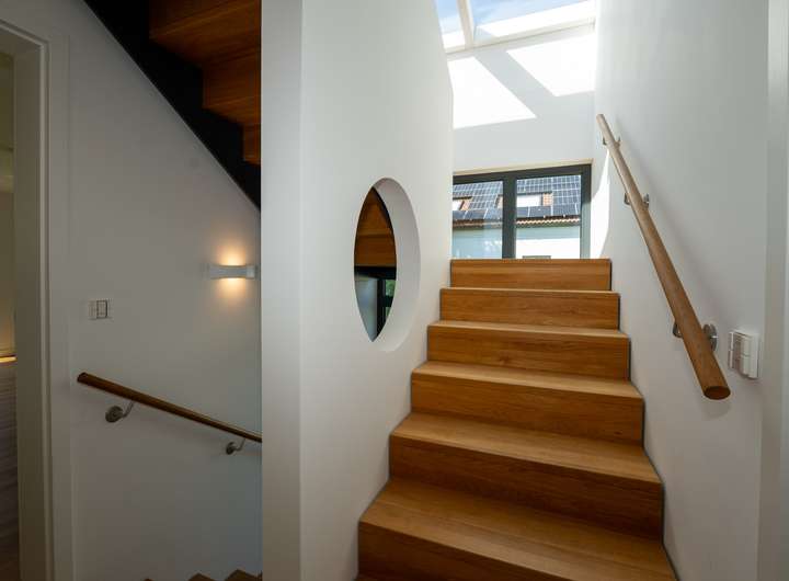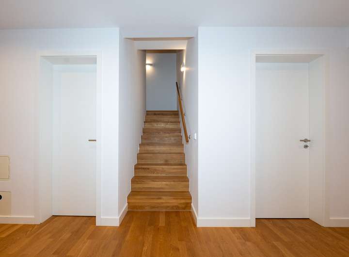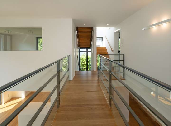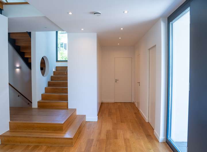 Eichen-Parkett im gesamten Haus, Ausnahmen Werkstatt, HWR, Gästebad, Kinderbad und WC