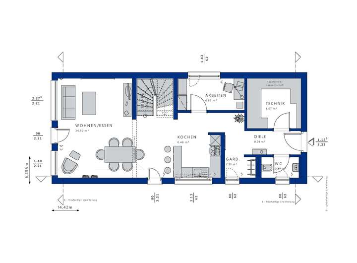 Unser Einfamilienhaus BALANCE 145 bietet durch den bodentief verglasten Wohn- und Esszimmerbereich nicht nur lichtdurchflutete Räumlichkeiten, sondern dadurch auch ein einmaliges Wohngefühl. Der offene Wohn-Ess-Küchen-Bereich sind der ideale Treff- und Lebensmittelpunkt für Ihre Familie und Freunde.