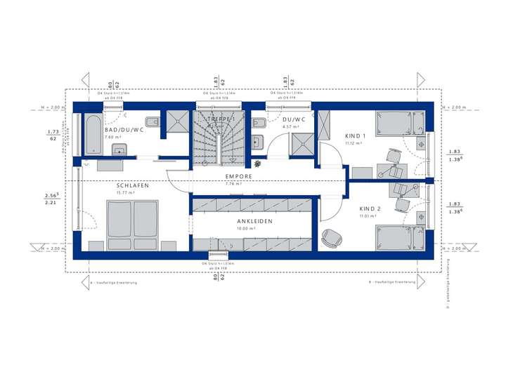 Im Obergeschoss finden Sie 2 schöne Kinderzimmer mit einem separatem Kinder-Bad.
