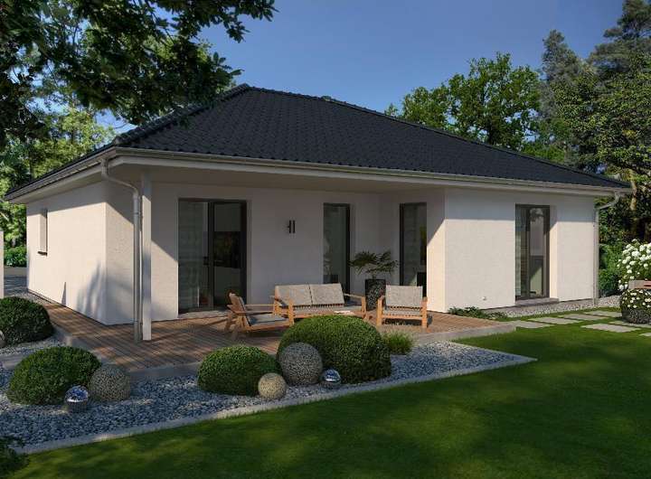WOHNGLÜCK OHNE HINDERNISSE - Dieser Bungalow fällt nicht nur durch sein charmantes Design auf. Die markante Winkelform ermöglicht auch einen variablen Grundriss. Die besondere Raumanordnung des Winkelbungalows 108 sowie die vielen kleinen Details machen das Wohnen für Sie zum Genuss.