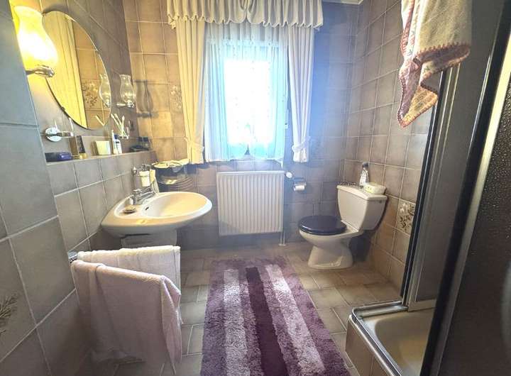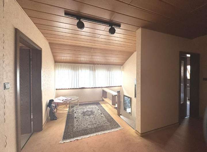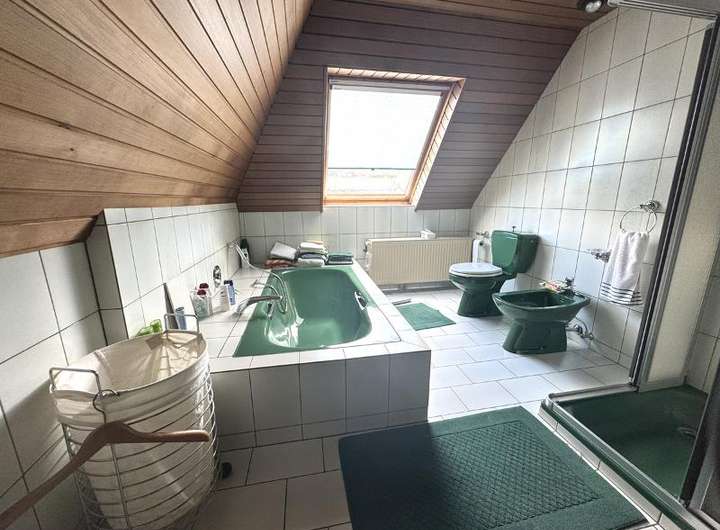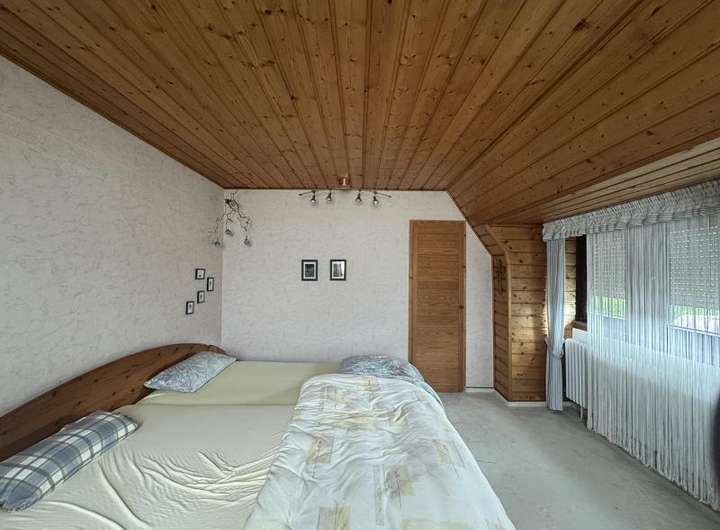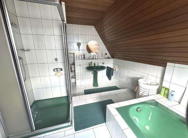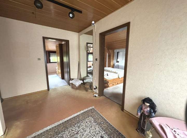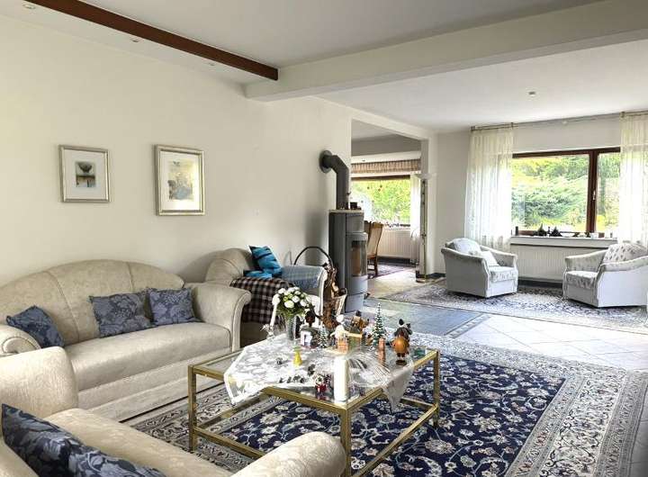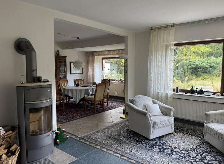 Erdgeschoss: Eingang, Diele, Flur, Wohn-Esszimmer mit Kaminofen und Terrassenanschluss, 2 Schlafzimmer, Bad mit Dusche, Küche mit EBK. Dachgeschoss: Flur, 2 Schlafzimmer, Abstellraum (Gäste-Zimmer), Bad mit Dusche und Badewanne. Gesamte Wohnfläche ca. 175 m². Grundstücksfläche ca. 1.242 m². Unterkellerung ca. 30 m². Doppelgarage ca. 36 m².
