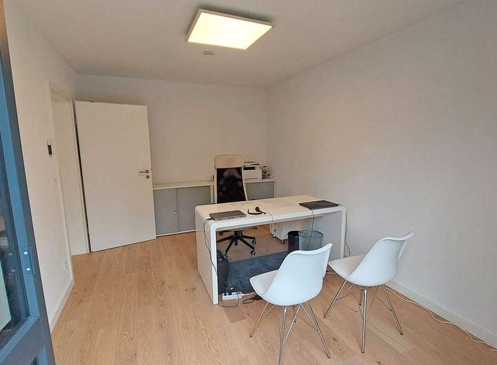 Der Eingangsbereich öffnet sich zu einer großzügigen Diele mit offener Garderobennische und stilvollem Gäste-WC. Rechterhand befindet sich ein Arbeitszimmer, das sich auch als Gäste- oder Schlafzimmer nutzen lässt.