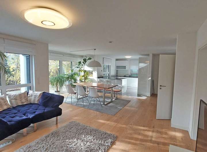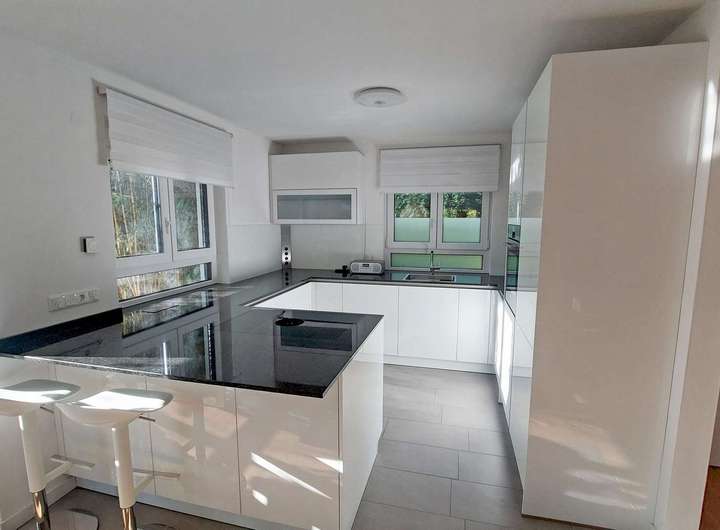 - Geräte: BORA Pure Induktionskochfeld (mit integriertem Abzug), Miele-Geschirrspüler mit AutoDos, Siemens-Einbauofen mit Mikrowellenfunktion, geräumige Kühl-Gefrierkombination