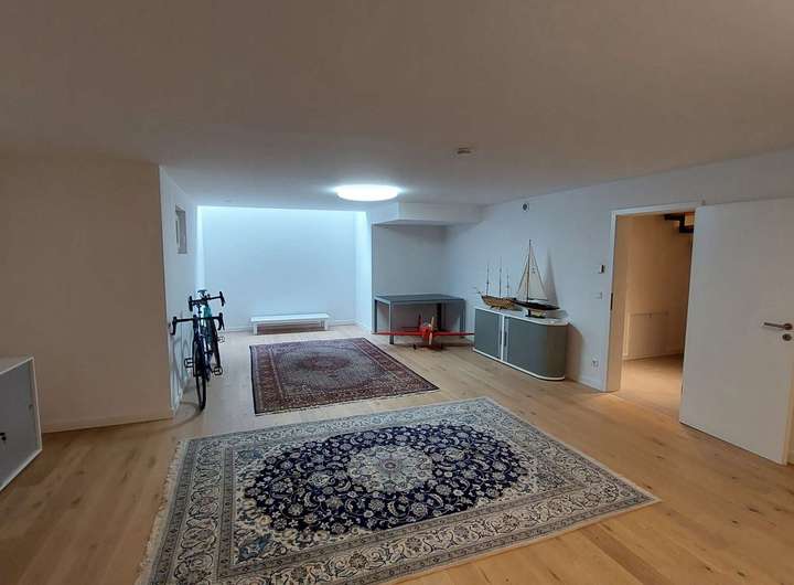 Die Wohnfläche von ca. 197 m² (nach Ausbau der Terrasse, vorher 178 m²) verteilt sich auf fünf Zimmer, zwei Bäder, ein Gäste-WC sowie einen voll ausgebauten Hobbyraum im Untergeschoss und bietet viel Platz für Familie, Homeoffice und Gäste.
