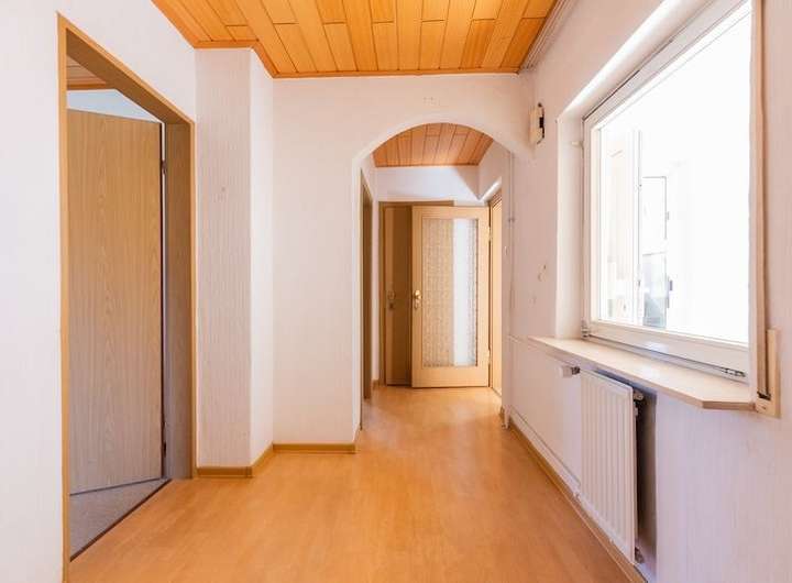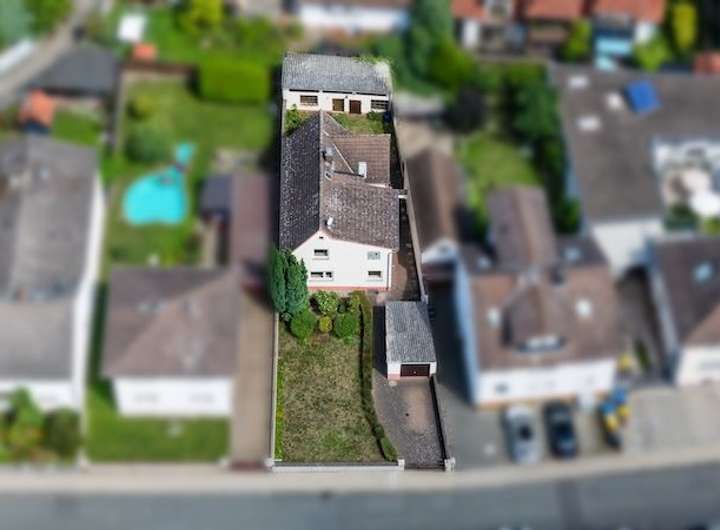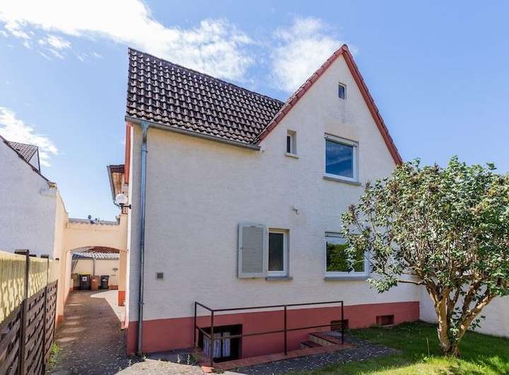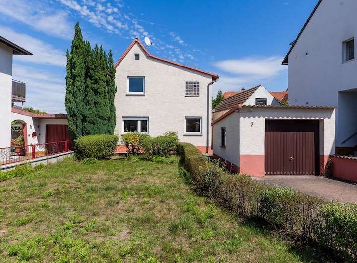 Dieses massiv gebaute Einfamilienhaus in zentraler Ortslage von Nauheim bietet viel Platz, ein großzügiges Grundstück und zahlreiche Möglichkeiten, individuelle Wohnträume zu verwirklichen. Das Haus wurde ursprünglich 1950 errichtet und im Laufe der Jahre mehrfach erweitert, zuletzt bis in die frühen 1970er-Jahre. Heute stehen rund 127 Quadratmeter Wohnfläche auf zwei Etagen zur Verfügung, ergänzt durch Nutzfläche im Keller, eine Garage sowie ein Nebengebäude. Im Erdgeschoss befinden sich der Eingangsbereich mit Treppenhaus, ein Tageslichtbad mit Badewanne, ein Schlafzimmer, die Küche sowie ein helles Wohnzimmer. Über die Treppe gelangt man in das Obergeschoss, das drei weitere Zimmer bereithält. Eines dieser Zimmer fungiert als Durchgangszimmer, das sich jedoch hervorragend als Büro oder auch als großzügiges Ankleidezimmer nutzen lässt. Ergänzt wird das Raumangebot auf dieser Etage durch ein separates WC sowie ein kleines Duschbad. Vom Hauptschlafzimmer aus eröffnet sich der Zugang zu einer über 15 Quadratmeter großen Terrasse, die sich ideal für private Stunden im Freien eignet – hier ist man ganz für sich. Das Haus ist teilunterkellert und über einen separaten Zugang von außen begehbar. Dort finden sich ein Heizungsraum mit dahinterliegendem Tankraum, Anschlüsse für die Waschmaschine sowie ein weiterer Kellerraum mit rund 14 Quadratmetern, der praktische Abstellmöglichkeiten bietet. Beheizt wird die Immobilie über eine Ölzentralheizung aus dem Jahr 2003. Das Grundstück umfasst rund 400 Quadratmeter und bietet damit ausreichend Freiraum für Garten, Erholung und individuelle Gestaltung. Neben dem Wohnhaus stehen auf dem Areal eine Garage aus den 1960er-Jahren, Stellplätze in der Einfahrt sowie ein massiv gebautes Nebengebäude zur Verfügung. Dieses unterteilt sich in zwei Räume und eignet sich vielseitig – ob als Stauraum, Werkstatt, Sommerküche oder für Hobbyzwecke. Das Haus wurde über die Jahre hinweg gepflegt, größere Modernisierungen haben jedoch in jüngerer Zeit nicht mehr stattgefunden. So stammen die Sanitärbereiche und ein Großteil der Kunststofffenster mit Isolierverglasung vermutlich aus den 1980er-Jahren. Für die neuen Eigentümer eröffnet sich hier die Gelegenheit, eigene Ideen einzubringen und durch gezielte Modernisierungen das volle Potenzial dieser Immobilie auszuschöpfen.