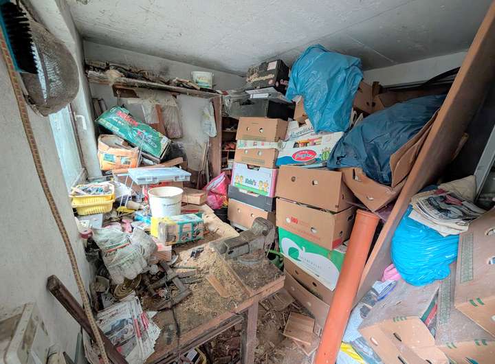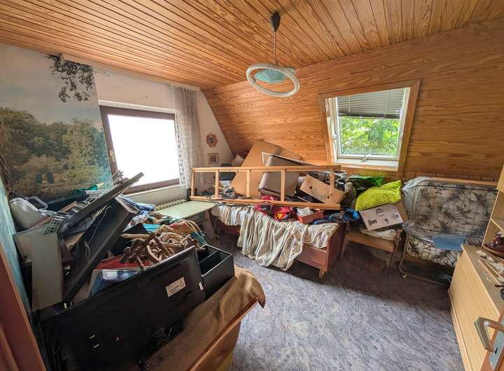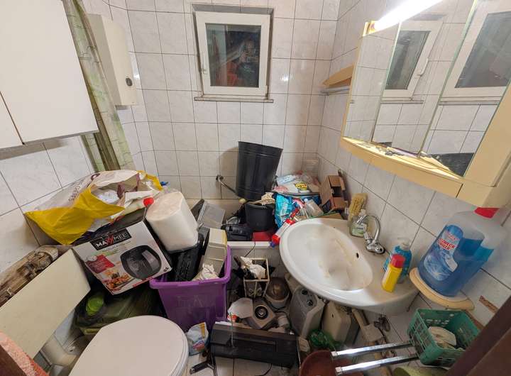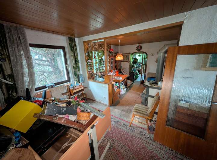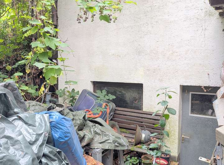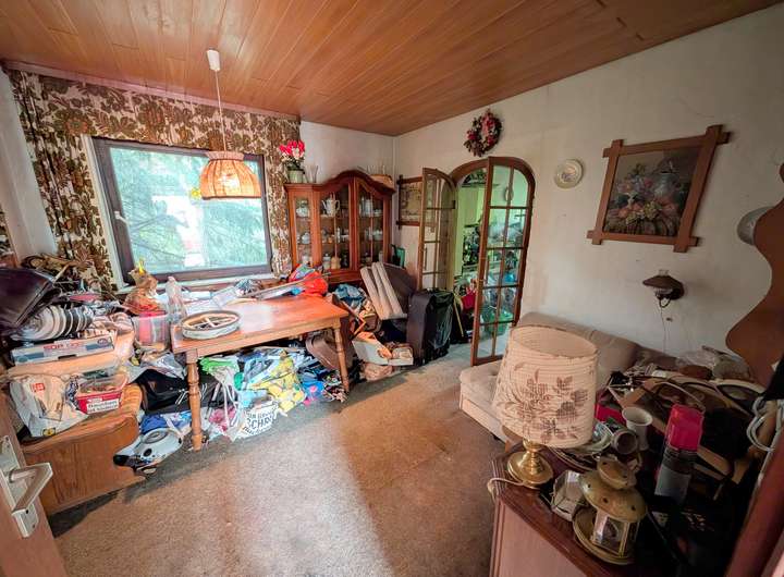 Das Haus stand die letzten Jahre überwiegend leer und wurde als Abstellfläche von einem Familienangehörigen benutzt. Daher steht in der Garage, im Keller, auf der Terrasse, in der Werkstatt und auch im Haus noch viel Gerümpel, welches geräumt werden muss.