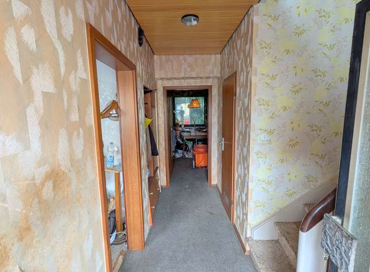 Der aktuelle Zustand des Hauses ist stark Renovierungs,- und Sanierungsbedürftig, bis auf das Dach welches vor etwa 10 Jahren neu eingedeckt wurde.