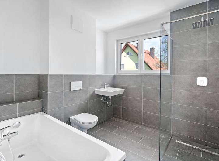 -Hochwertige Markenarmaturen, edles Feinsteinzeug und -Echtholzparkett