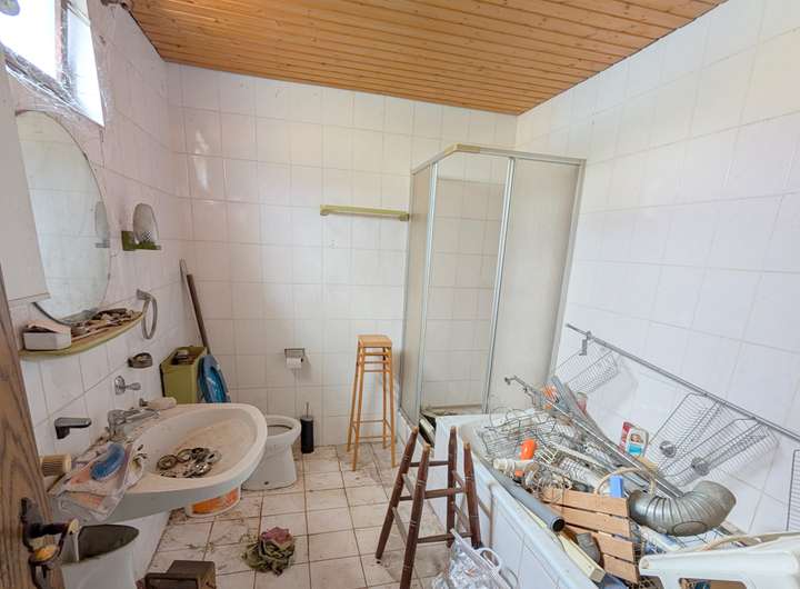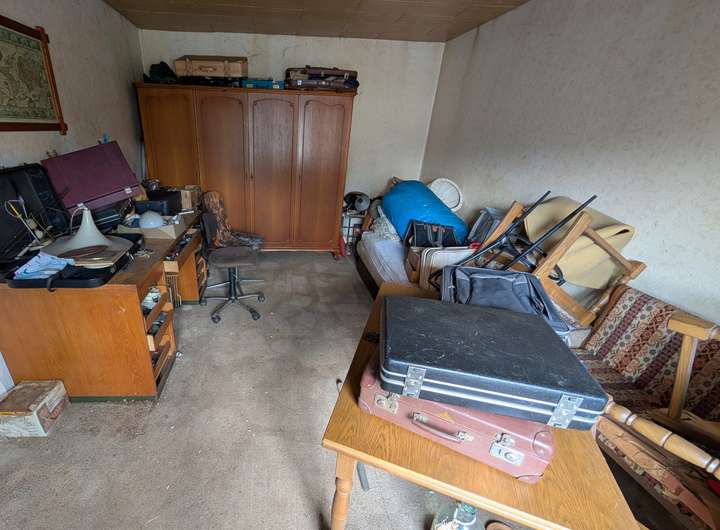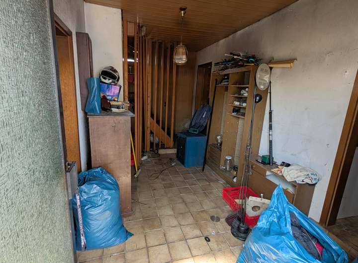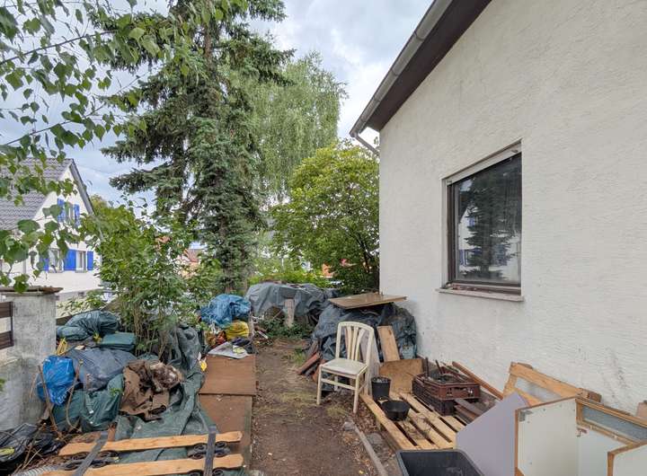 Das Haus stand die letzten Jahre überwiegend leer und wurde als Abstellfläche von einem Familienangehörigen benutzt. Daher steht in der Garage, vor der Garage und auch im Haus noch Gerümpel, welches geräumt werden muss.