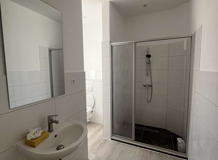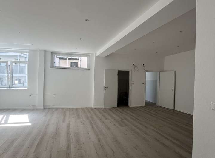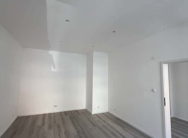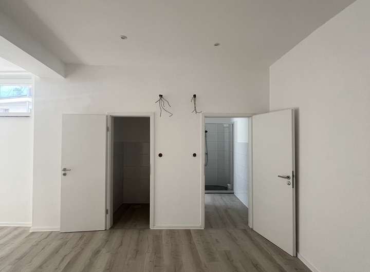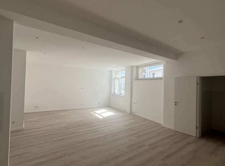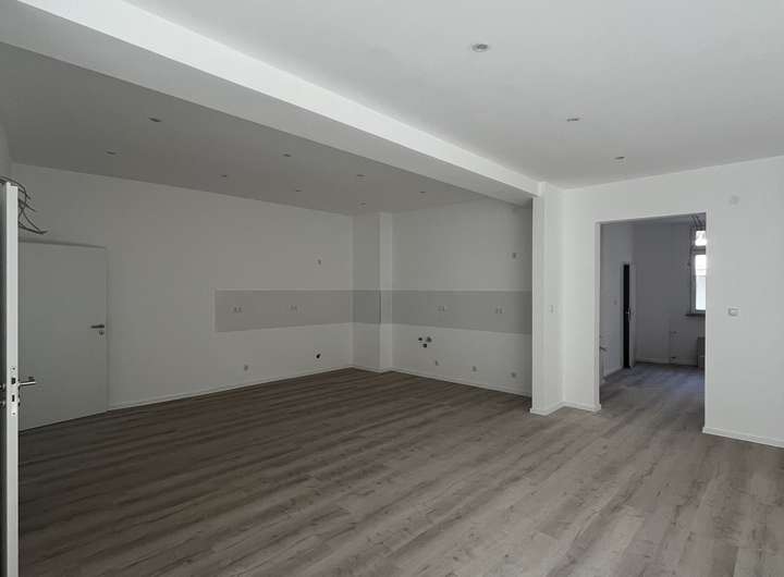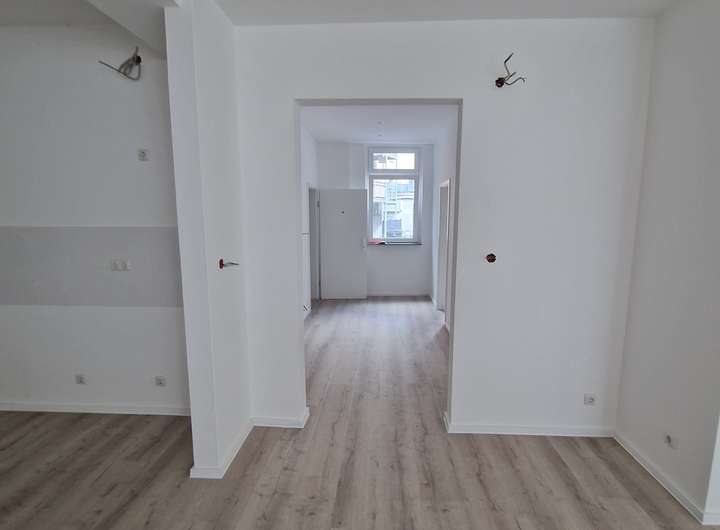 Diese Wohnung wird gerade komplett neu ausgebaut. Sie befindet sich in einem Anbau im Hof, so dass es sehr ruhig ist. Innerhalb des Gebäudes liegt sie im Erdgeschoss. Große Fenster lassen viel Licht in die Wohnung.