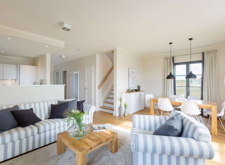 Diese hochwertige Reetdachvilla vereint stilvolles Wohnen mit traditionellem Flair. Direkt am Feldrand gelegen bietet das Haus auf rund 116 m² drei geräumige Schlafzimmer, zwei vollwertige Bäder, ein zusätzliches Gäste-WC sowie eine eigene Sauna. Der lichtdurchflutete Wohn- und Essbereich mit Kamin bildet das Herzstück des Hauses.