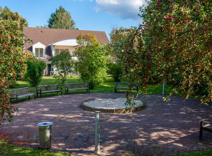 Terrasse mit Blick in die schön angelegte Gartenanlage. Hier ist eine herrliche Oase zur Erholung