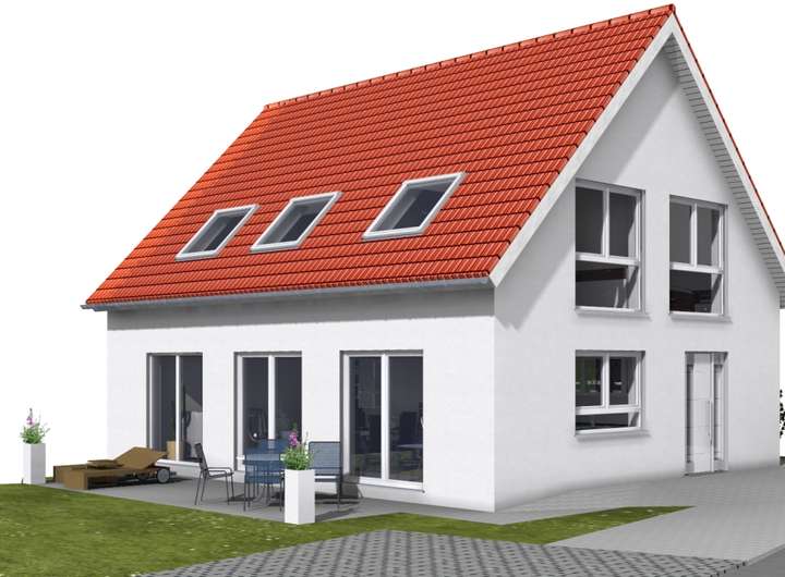 Diese Doppelhaushälfte befindet sich in zentraler Lage von Arheilgen und wird an die bereits bestehende DHH auf dem Nachbargrundstück bündig angebaut.
