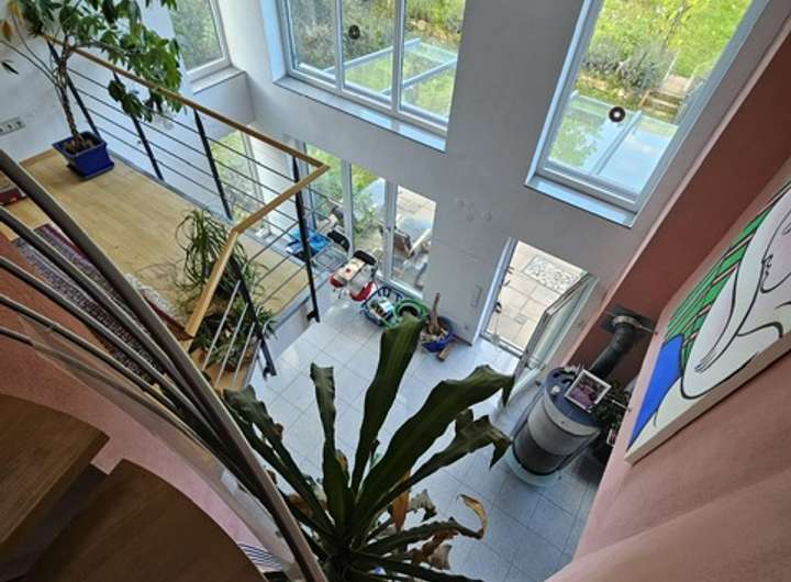 Ebenfalls im Keller befinden sich die Pelletheizung sowieso der Pelletlagerraum. Ergänzend wird Warmwasser auch mit einer Solarthermieanlage erwärmt.