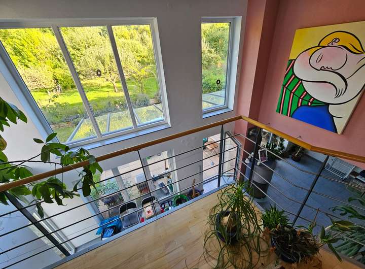 Im Obergeschoss befinden sich zwei Schlafzimmer, ein großzügiges Badezimmer und eine Galerie.