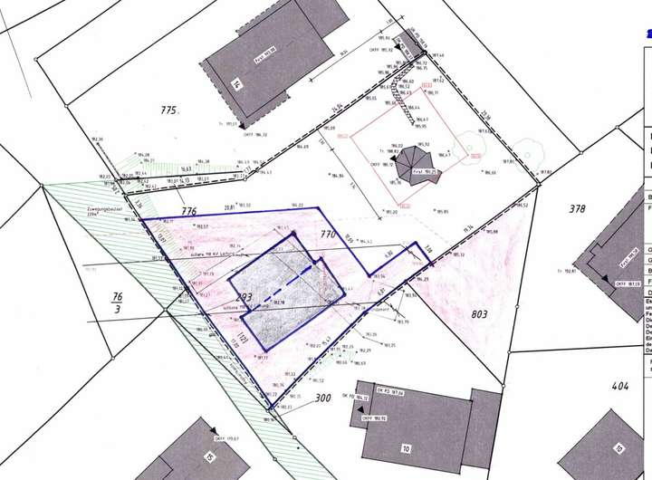 Ein markanter Strommast an der Grundstücksgrenze beeinflusst die Gestaltung der Bebauung nicht und stellt keine Einschränkung dar. Zudem besteht die Möglichkeit, ein angrenzendes Grünstück mit 161 m² auf dem Flurstück 803 nur gegen Gebot zu erwerben – ideal für Garagen oder Gartenhäuser.