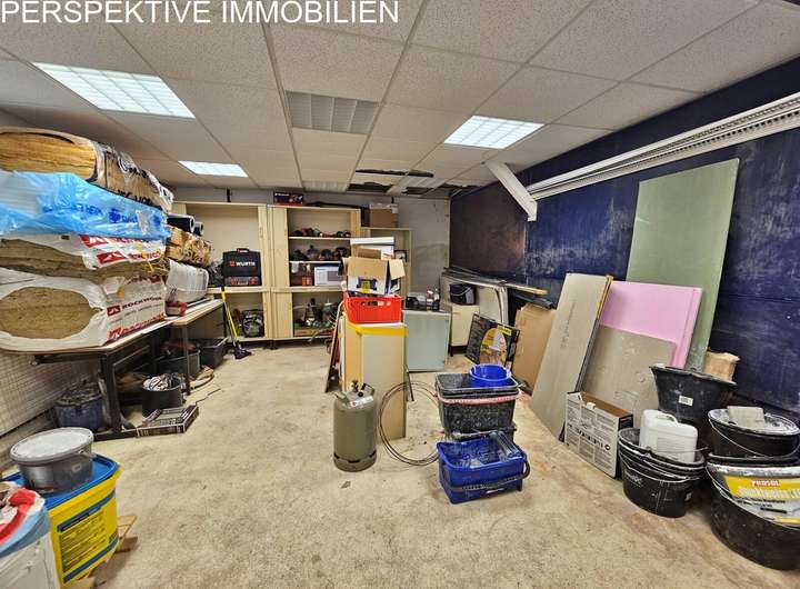Im Parterre des Gebäudes finden sich neben dem Heizraum auch praktische Nutzflächen sowie eine integrierte Lagerhalle, die für individuelle Zwecke flexibel genutzt werden kann.