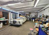 eine große Nutzfahrzeuggarage (Baujahr 1965) mit ca. 163 m² Nutzfläche,