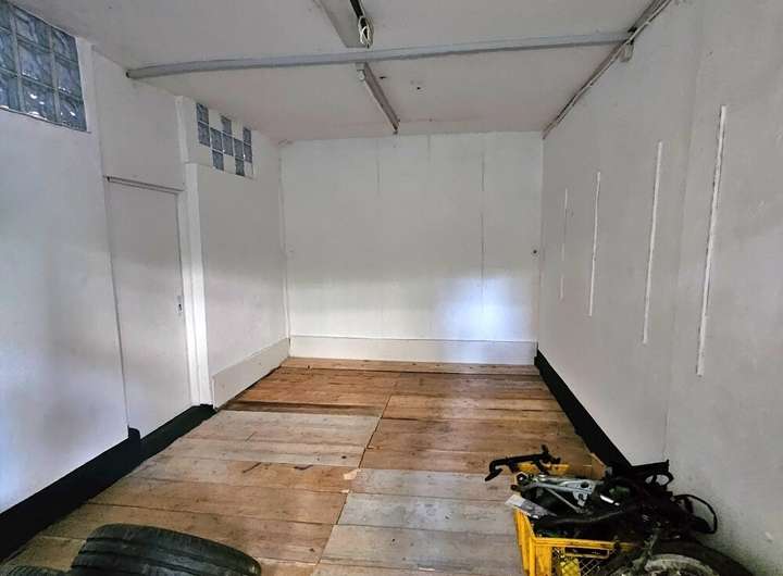 eine weitere kleinere Lagerhalle sowie zwei Garagen außerhalb des Gebäudes.