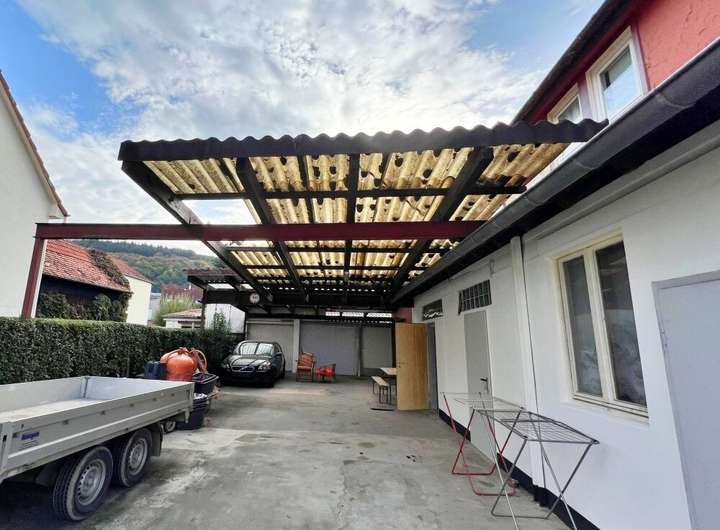 Einfamilienhaus mit Lagerräumen, Halle, Werkstatt etc.