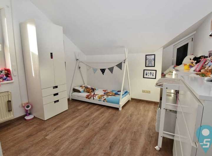 Aus dem Flur heraus gelangen Sie über die Treppe nach oben in das ausgebaute Dachgeschoss. Die Räumlichkeiten verteilen sich hier auf drei Zimmer sowie ein Tageslichtbad mit Wanne, Dusche und WC. Zurück im Erdgeschoss führt Sie eine Treppe in den unteren Teil des Hauses. Ein Zimmer ist zu Wohnzwecken ausgebaut. Ein eigener Zugang zur Gartenterrasse, ebenfalls südseitig ausgerichtet, wertet diesen Raum auf. Neben der Heizung und sonstigen Haustechnik finden hier unten Ihre Hausgeräte, wie Waschmaschine und Wäschetrockner, ihren Platz. Zwei weitere große Kellerräume des Hauses stehen Ihnen zur vielfältigen Nutzung zur Verfügung.