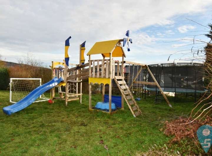 Eine Treppe führt Sie auch von der oberen Terrasse in den Gartenteil des Hauses. Der Garten ist rundum abgeschlossen, die große Grünfläche bietet Ihren Kindern sicheres Spielvergnügen direkt am Haus.