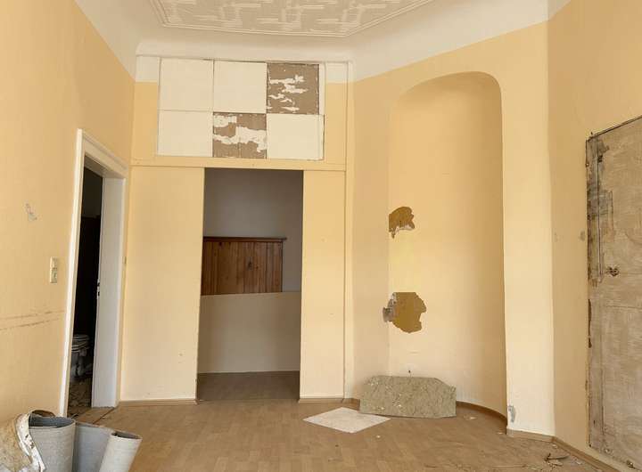 Das Gebäude befindet sich in sanierungsbedürftigem Zustand – genau hier liegt Ihre Chance. Erste Schritte sind bereits getan: Die Böden wurden geöffnet, um die Zwischendecken zu prüfen, und die Denkmalschutzbehörde hat das Objekt bereits in Augenschein genommen. Besonders interessant: Ein Sanierungs- und Ausbaukonzept liegt bereits vor und kann übernommen werden. Dieses sieht eine Gesamtwohnfläche von ca. 370 m² sowie eine erweiterte Gewerbefläche im Erdgeschoss von ca. 178 m² vor. Zudem beinhaltet die Planung einen Anbau im Hofbereich, der nicht nur zusätzlichen Raum, sondern auch ausreichend Platz für Stellplätze schafft – ein echter Mehrwert in dieser zentralen Lage.