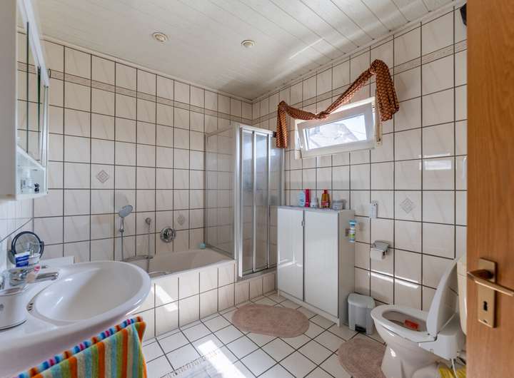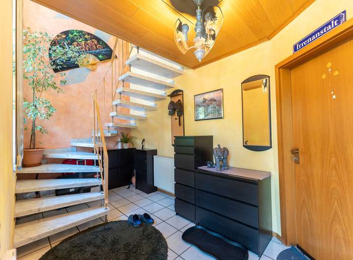 Im Erdgeschoss befindet sich eine 2-Zimmer-Wohnung mit Wohn- und Essbereich, Schlafzimmer, Badezimmer, Abstellraum sowie einem großen Hauswirtschaftsraum. Diese Einheit eignet sich ideal für Familienangehörige, Gäste oder auch zur Vermietung.