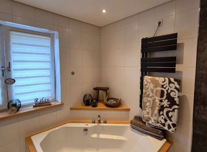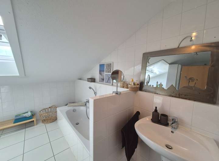 Badezimmer mit Wanne, Dusche und Fenster