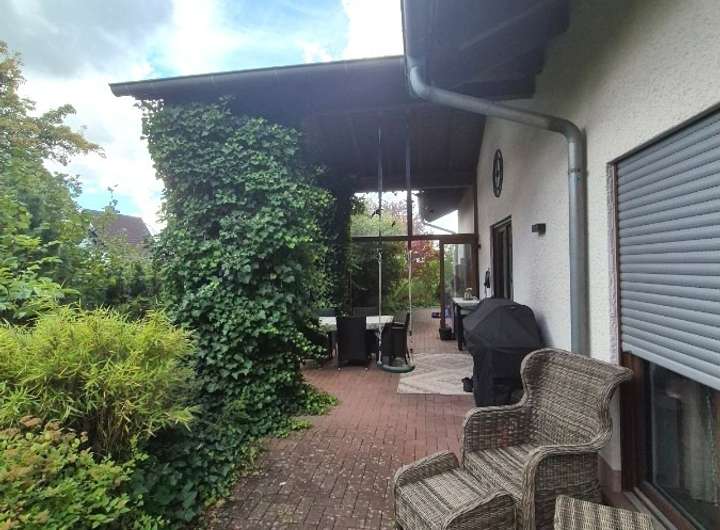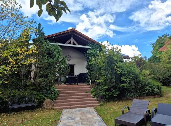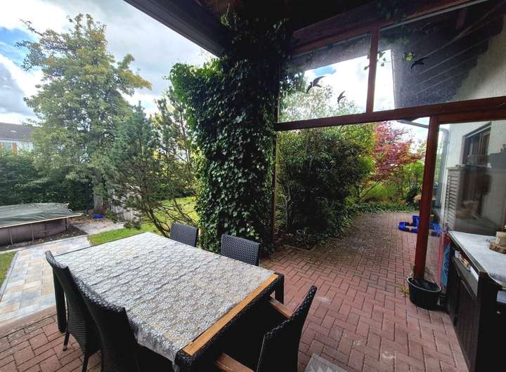 Die großzügige Gartenanlage mit gepflegtem Grün und einem liebevoll angelegten Grillplatz (Investition ca. 5.000 €) lädt zum Entspannen und Verweilen ein. Die teilüberdachte Südwest-Terrasse mit elektrischer Markise (Fernbedienung) ist ebenerdig zugänglich und über Stufen direkt mit dem Gartenbereich verbunden – ideal für sonnige Nachmittage und gesellige Abende.