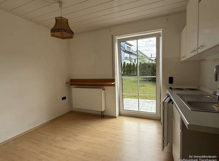 Bereits im Erdgeschoss erwartet Sie eine separate Einliegerwohnung mit Wohnküche, Schlafraum, Bad und Flur.