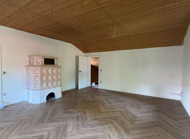 Ein echtes Highlight ist der original erhaltene historische Kachelofen, der nicht nur als Blickfang dient, sondern auch ein besonderes Wohngefühl vermittelt.