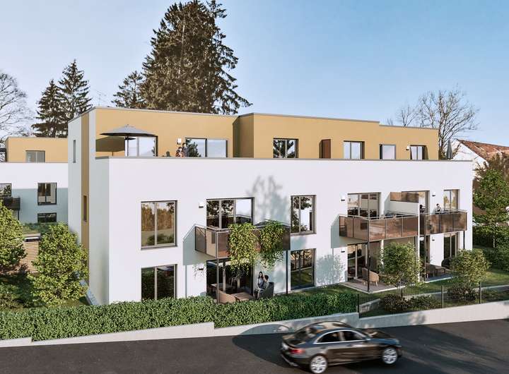 20 Wohnungen in drei gut platzierten Gebäude umrahmt von Grünanlagen: das ist Aufkirchens grüne Mitte in Erdings Norden. Die nachhaltige FUCHS.Holzhybrid-Bauweise sichert die Wertbeständigkeit und Energieeffizienz QNG+ sowie eine AfA von 5 + 5 %.