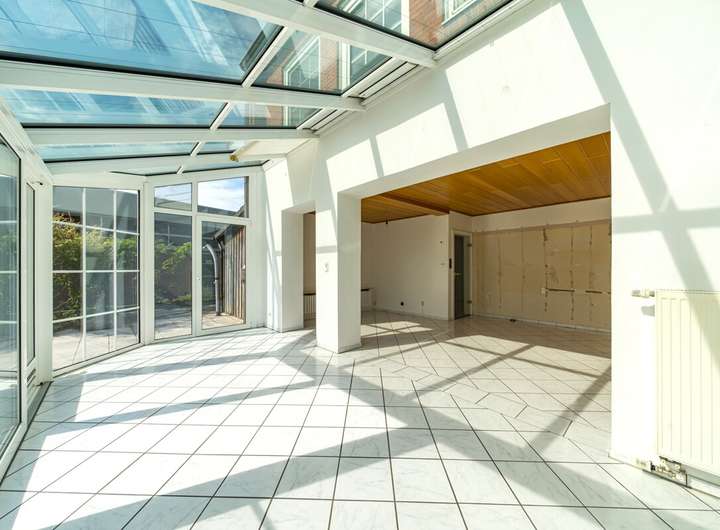 Fenster: Kunststofffenster mit Wärmeschutzverglasung und innenliegenden Sprossen (1996), Wintergarten (2002), teilweise blinde Scheiben
