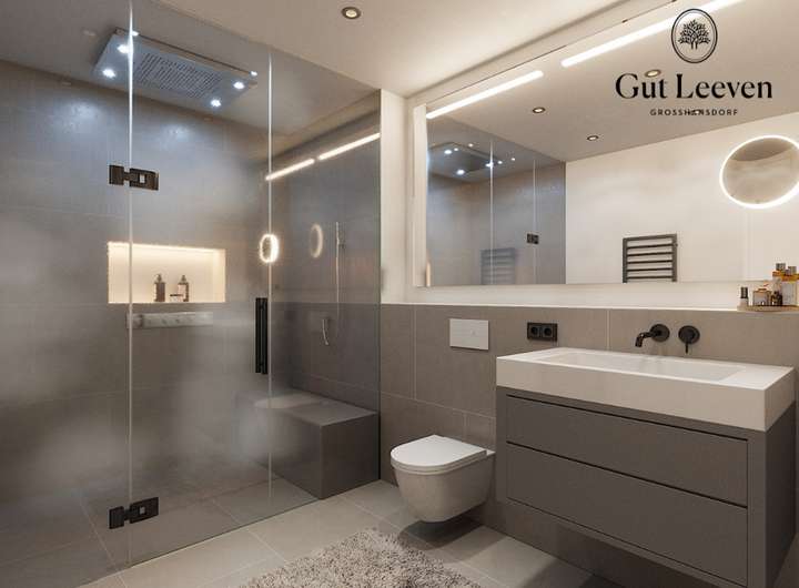Besonderer Wert wurde auf die Badezimmer gelegt, die mit Armaturen von namhaften Herstellern und großformatigen Fliesen im 60x60 cm-Format ausgestattet sind – so entsteht ein moderner, zeitloser Stil, der das tägliche Wohlfühlen in den Vordergrund stellt.