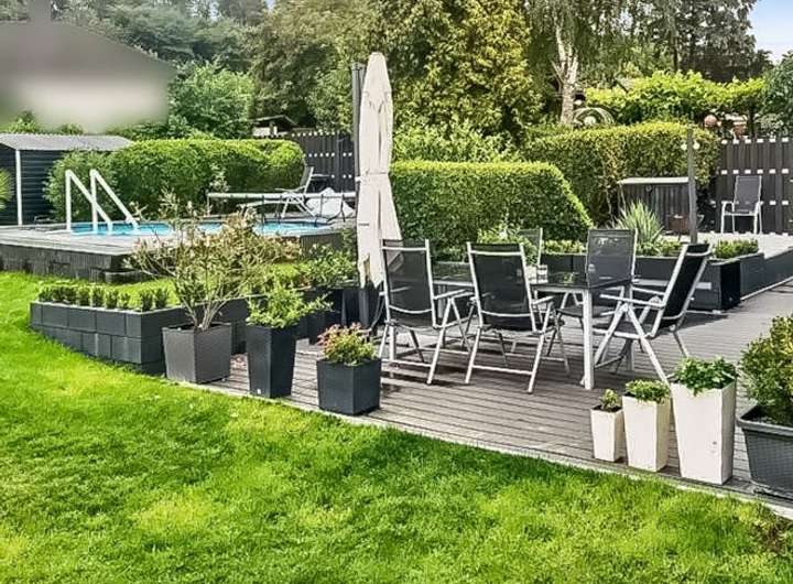 In dem liebevoll gestalteten Garten genießen Sie Ihre Privatsphäre und haben dabei viele Gestaltungsmöglichkeiten. Ein Außenpool sowie zwei Terrassen in Südwest-Ausrichtung ergänzen das Angebot. Zudem stehen eine ca. im Jahr 1980 errichtete Garage sowie ca. drei Außenstellplätze direkt vor dem Hauseingang zur Verfügung.