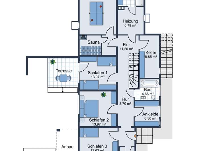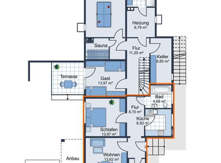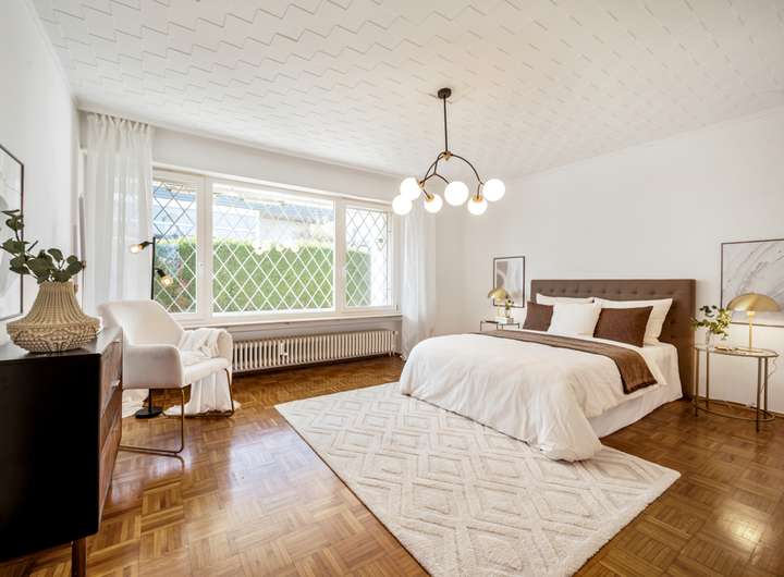 Kein Bock auf ein 08/15 oder Standard-Zuhause? Dann aufgepasst! Wiesbaden-Kohlheck: Ein echtes Bungalow-Schätzchen in Bestlage mit separater Einliegerwohnung auf über 700 m² großem Eck-Grundstück! Aktuell ist die Immobilie wie folgt aufgeteilt: Bungalow (ca. 150 m²) Auf einer Ebene befinden sich ein großes Schlafzimmer mit Terrasse und eigenem Tageslichtbad, ein Gäste-WC, die voll eingerichtete Küche mit Platz für einen Esstisch und der riiiiiiiesige Wohnbereich mit Terrasse und Balkon. Über eine Treppe gelangen Sie ins Gartengeschoss, wo ein weiteres Schlafzimmer mit Terrassenzugang wartet. Zusätzlich finden Sie hier eine Sauna, einen Hobbyraum, ein kleines Duschbad und natürlich den Heizungs- & Kellerraum. Einliegerwohnung (ca. 50 m²) Hier befinden sich 2 Zimmer, eine kleine Abstellkammer, Küche und Tageslichtbad. Und genau an dieser Stelle bieten sich Ihnen hier diverse Möglichkeiten: Genügend Platz für die ganze Familie schaffen Sie durch verhältnismäßig "kleinen" Aufwand , in dem Sie beide Einheiten miteinander verbinden. Somit würden Ihnen insgesamt 4 Schlafzimmer zur Verfügung stehen. Oder Sie nutzen die Einliegerwohnung, um Mieteinnahmen zu generieren. Oder Sie verbinden Arbeiten und Wohnen auf einem Grundstück. Oder Sie schaffen sich ein Zwei-Generationen-Zuhause. Oder oder oder Fazit: Dieses "Zukunfts-Haus" passt sich den Ansprüchen der Bewohner an und hebt sich positiv von sämtlichen "Standardhäusern" ab!