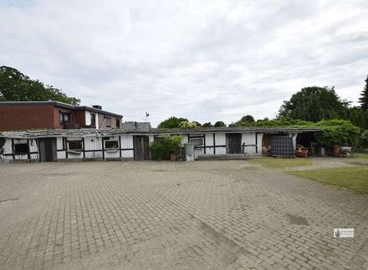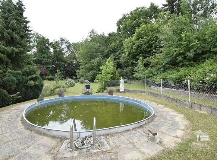 Auf dem Gelände befinden sich zwei Doppelhaushälften, die durch ihre klassische Architektur bestechen. Der weitläufige Garten lädt mit seinem Baumbestand und dem vorhandenen Swimmingpool zum Entspannen und Verweilen ein. Ein ehemaliger Hühnerstall bietet zusätzliche Lagerfläche und kann vielseitig genutzt werden.