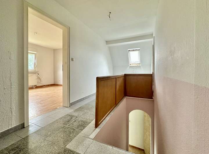 Darüber hinaus verfügen beide Haushälften über zusätzliche Räume, die derzeit als Nutzflächen dienen, sich aber problemlos zu weiterem Wohn- oder Arbeitsraum ausbauen lassen. Unter dem Satteldach stehen zudem Lagermöglichkeiten zur Verfügung. Zusätzlich bietet das Objekt praktische Kellerräume sowie eine gemeinschaftlich nutzbare Waschküche, die den Wohnkomfort abrunden.