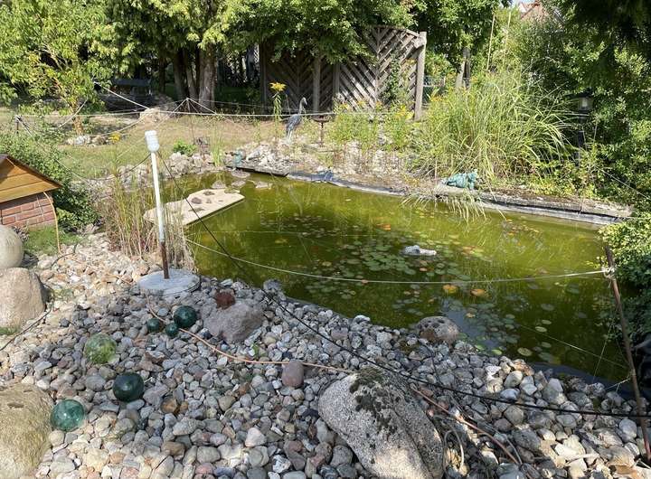 Das große Grundstück mit Teich bietet noch einiges an Potential.