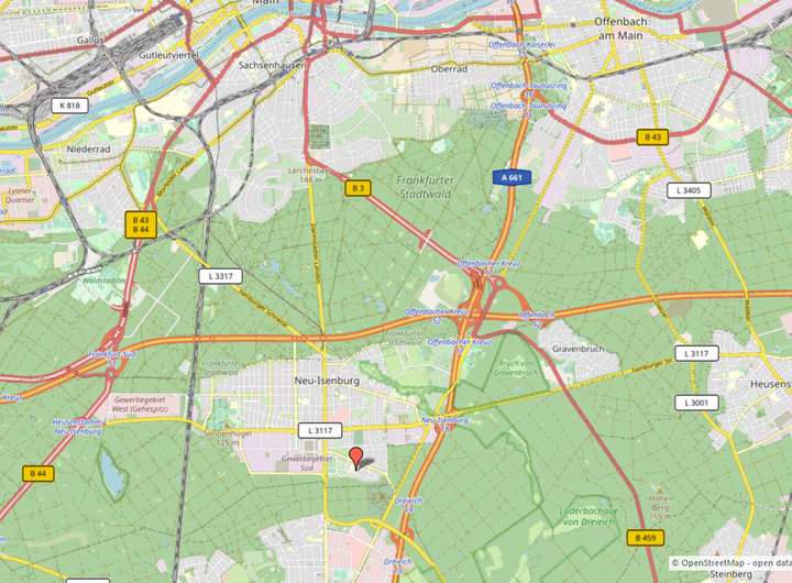 Neu-Isenburg liegt 7 km südlich von Frankfurt (Fahrzeit 10 Minuten) und wird im Norden vom Frankfurter Stadtwald und im Süden vom Staatsforst Neu-Isenburg umgeben. In der südlichen Innenstadt befindet sich das Isenburg-Zentrum (1972), ein überregionales Einkaufszentrum. Zu Neu-Isenburg gehören im Osten die Großwohnsiedlung Gravenbruch und im Westen Zeppelinheim. Die Wirtschaftsmetropole Frankfurt mit ihrem kulturellen und kommerziellen Angebot erreichen Sie in wenigen Minuten.
