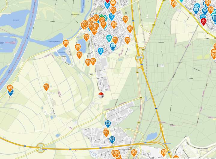 Auch die Anbindung an den öffentlichen Nahverkehr ist hervorragend - 300 Meter entfernt liegt die nächste Bushaltestelle, die Sie in knapp vier Minuten zu Fuß erreichen. Von hier aus fahren die Linien 710 und 717 in Richtung Mannheim, Heidelberg, Schwetzingen und Speyer.