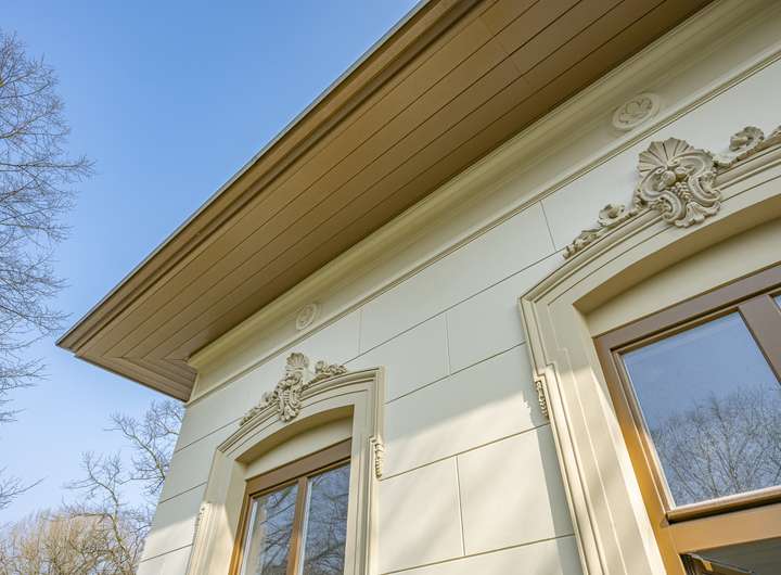 - Repräsentative Fassade im Stil des Spätklassizismus