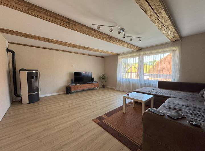 Dieses eindrucksvolle Zweifamilienhaus in traditioneller Fachwerkbauweise vereint historischen Charme mit individuellen Gestaltungsmöglichkeiten. Das großzügige Grundstück bietet nicht nur Platz zur Entfaltung, sondern auch vielfältige Nutzungsperspektiven für Familien, Investoren oder Handwerker mit Vision. Obergeschoss – ca 189 m² teilsaniert und bezugsbereit Bereits modernisiert und mit einer effizienten Pelletheizung ausgestattet Ideal als sofort bewohnbare Einheit oder zur Vermietung Erdgeschoss – ca 130 m² entkernt und bereit für neue Ideen Vollständig entkernt – optimale Voraussetzungen für den individuellen Ausbau Perfekt, um Ihre Wohnträume zu realisieren oder eine separate Einheit zu schaffen Weitere Vorzüge: Großzügiger Gartenbereich – bietet Platz für Freizeit, Gartenbau oder Anbauten 52 m² zusätzliche Nutzfläche – ideal als Lager, Werkstatt oder Hobbyraum Zusätzlicher Lagerschuppen mit Gartenhaus als Nebengebäude